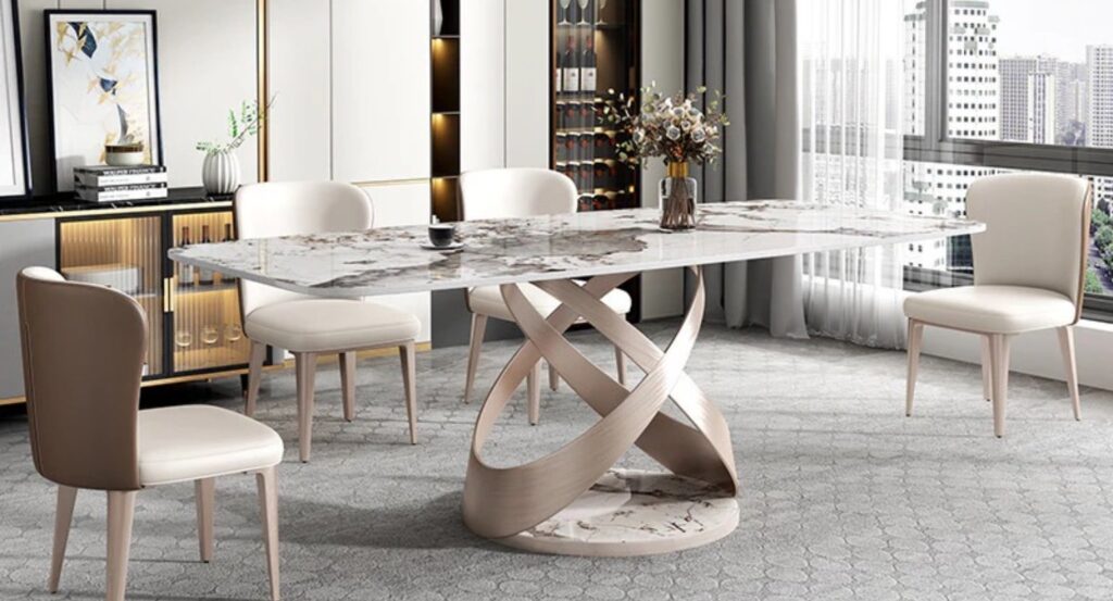 - Tafels met marmer of keramiek creëren een luxueuze, moderne woonkamer met karakter.