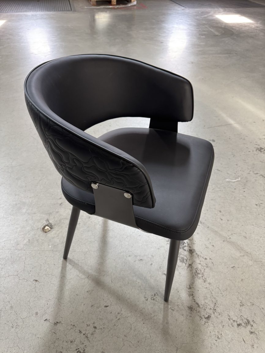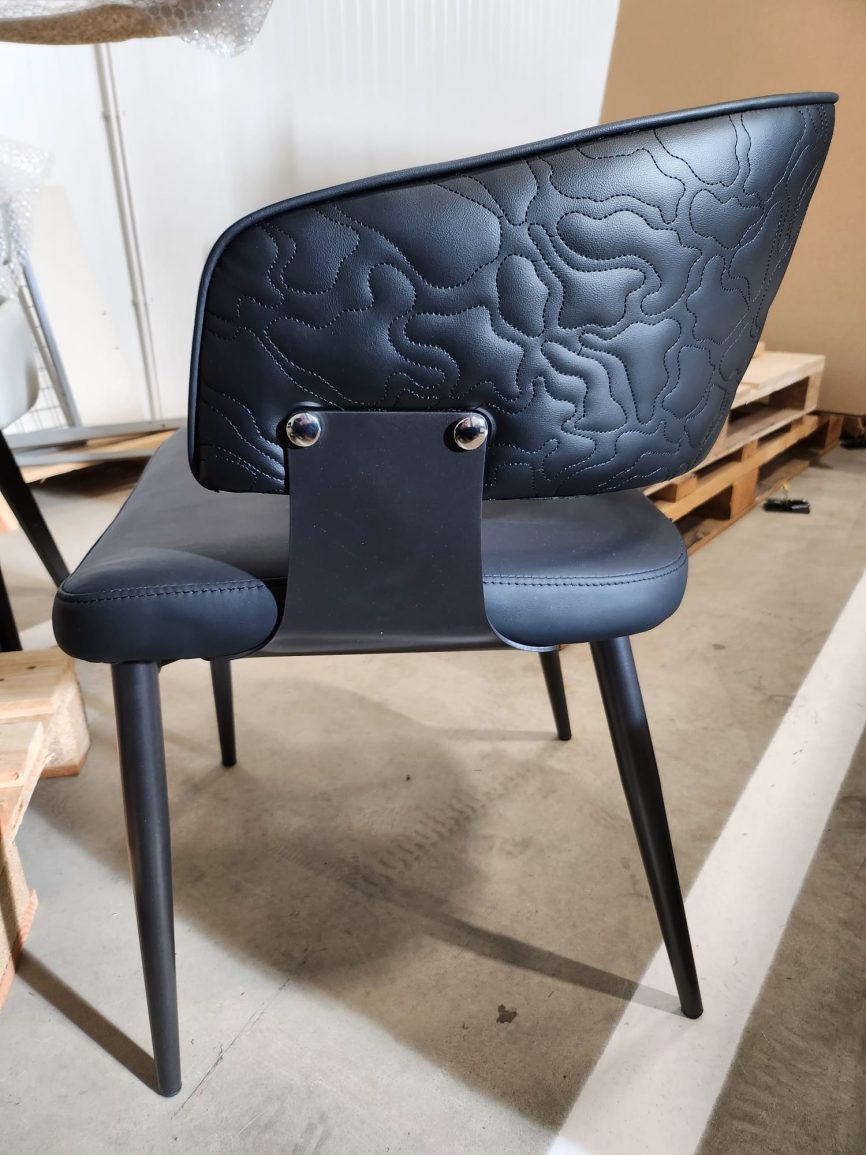 Eetkamerstoel met stikselpatroon – PU leer (zwart) met stalen poten