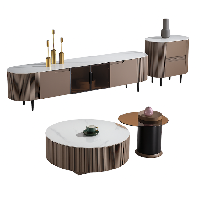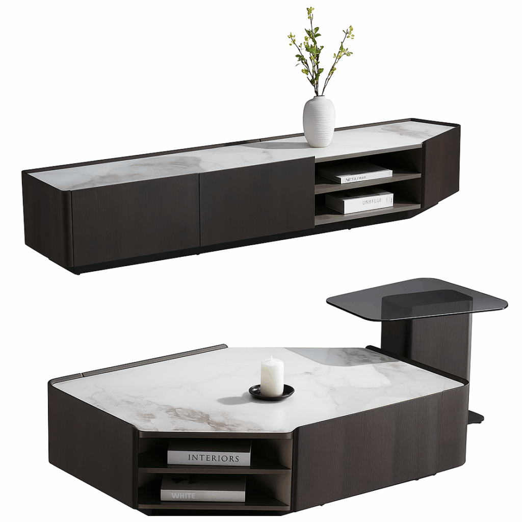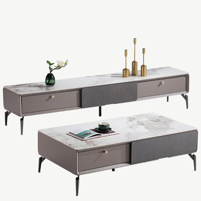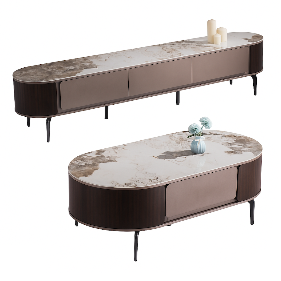 TV-meubel en salontafel met Pandora marmerstructuur - set van 2 stuks