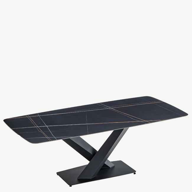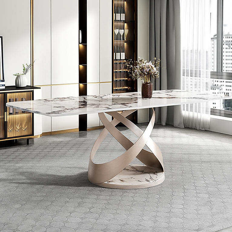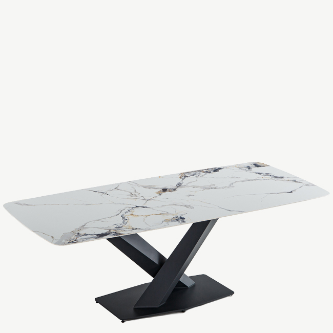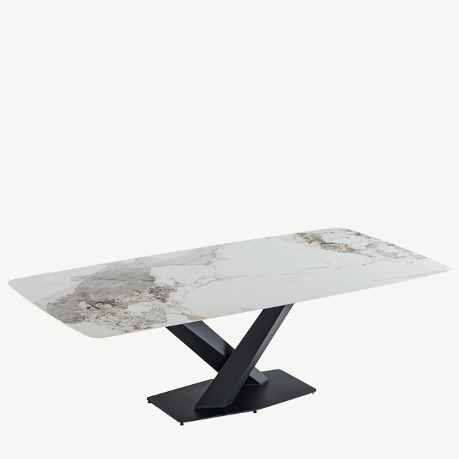 Eettafel met Pandora marmerstructuur - keramiek met gevlochten onderstel