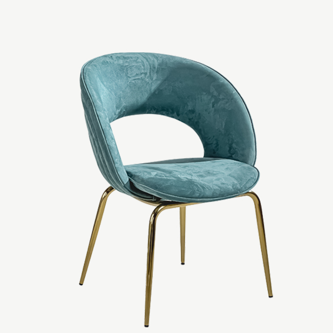 Eetkamerstoel met stikselpatroon- micro suède (turquoise) met gouden onderstel